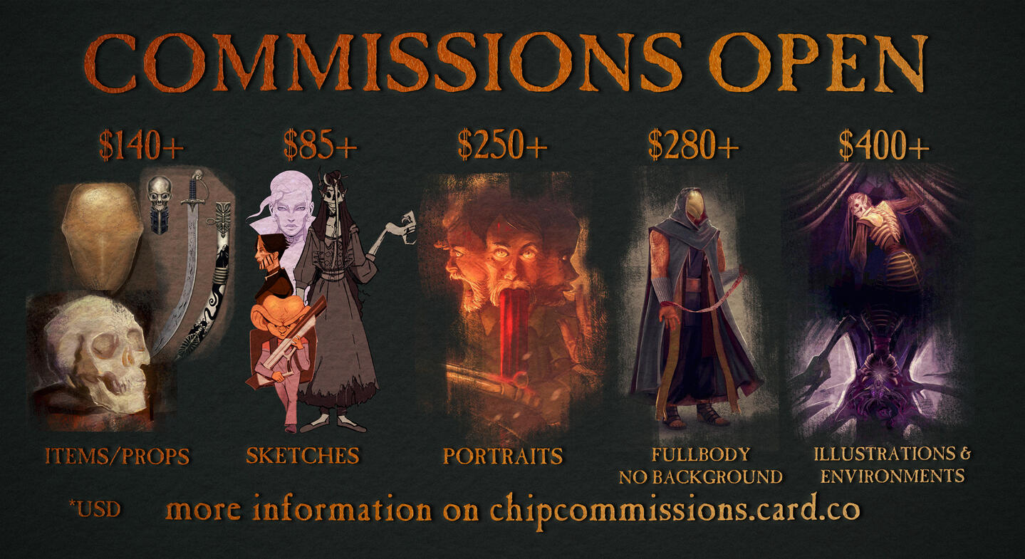 ✯Complete the GOOGLE FORM for commissions.✯ I will contact you when I'm about to start your commission and send you the Invoice.✯ The commission will dictate the turnaround on projects. A sketch could take a day or two, vs. environmental design painting could take up to a month.✯ Depending on the commission I plan on sending updates in between phases of the process.